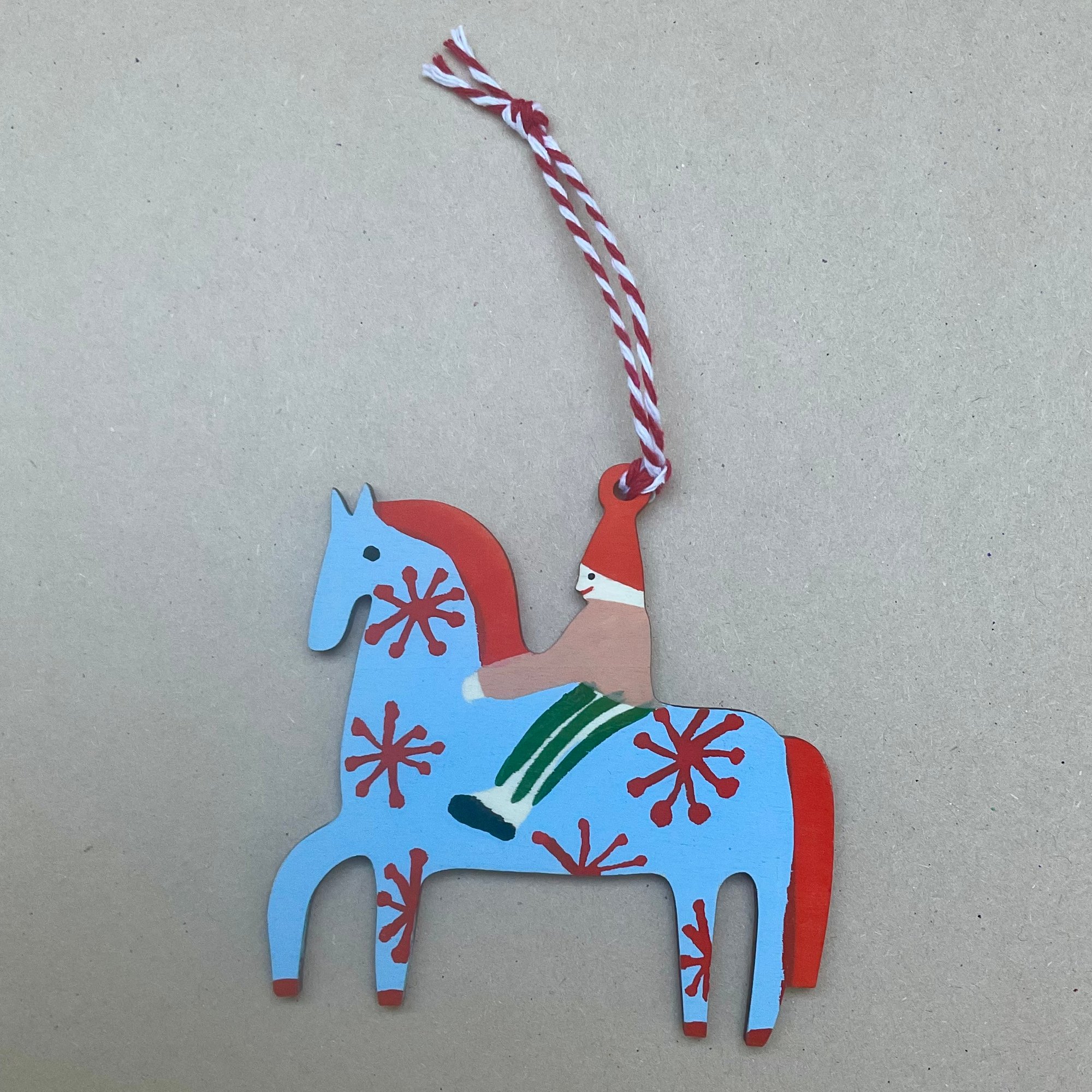 Handpainted on 4mm poplar ply and strung with stripy red bakers twine.